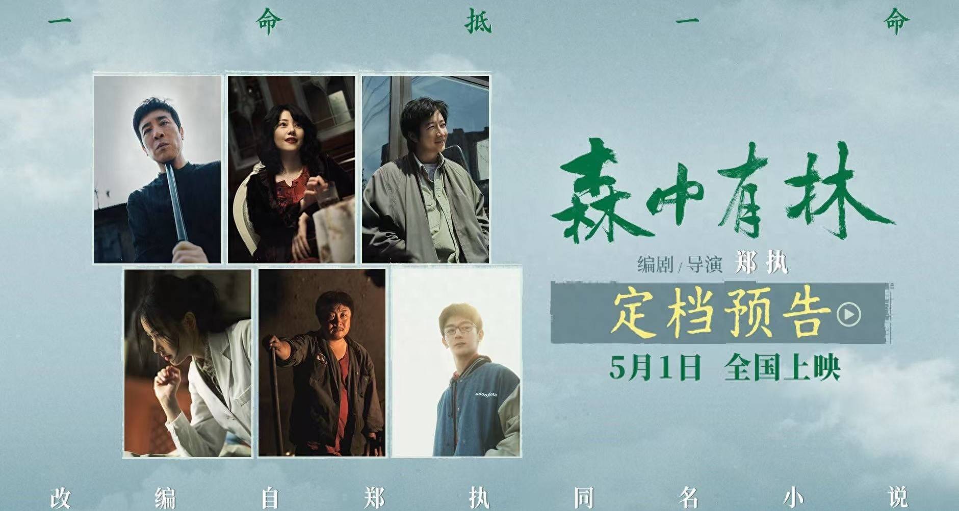 郑执编剧、执导的电影《森中有林》今日发布定档预告与定档海报,官宣电影将于5月1日全国上映。影片同步曝光由于和伟、高圆圆、韩庚、张天爱领衔主演,乔杉特别出演,夏之光主演的演员阵容。电影改编自郑执同名小说,原著影视化呼声极高,《森中有林》也是由郑执首次执导的大银幕作品。电影讲述了由一起命案引发的两个家庭、三代人之间近四十年的恩怨情仇与命运纠葛。廉加海(于和伟 饰)与昔日恋人王秀义(高圆圆 饰)重逢,流动的暧昧与隐秘的欲望背后却暗藏危险气息。预告中高圆圆颠覆银幕形象,红唇大波浪化身美丽而危险的“致命女人”。于和伟枪指高圆圆,在“放过”与“报仇”之间极限拉扯。在绿意盎然的森林深处,一段爱情、亲情与命案交织的东北往事即将拉开序幕。