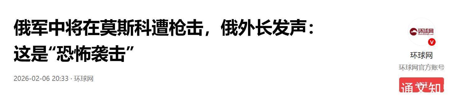 参考信源:俄军中将在莫斯科遭枪击,俄外长发声:这是“恐怖袭击” 2026-02-06 20:33·环球网