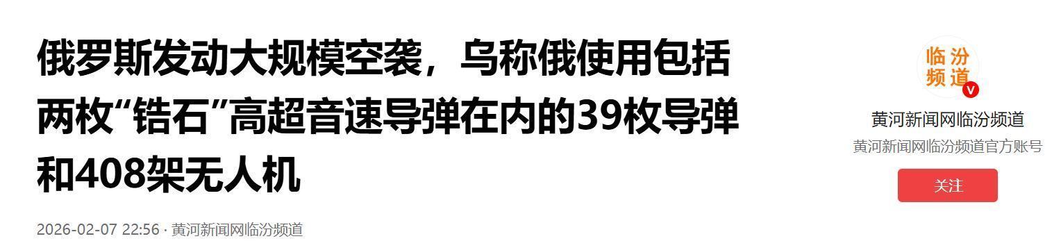 俄罗斯发动大规模空袭,乌称俄使用包括两枚“锆石”高超音速导弹在内的39枚导弹和408架无人机