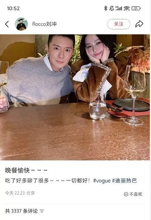 你多久没见过这样的热巴了?她不再是红毯上的高定女神,也不是杂志封面的冷艳美人,而是一个放松的女孩,与前辈一同吃饭聊天。刘冲的配文恰到好处:“吃了很多,聊了很多,一切都好。”这八个字精准地触动了粉丝的心——大家担忧的是什么?是怕她受委屈,怕她强颜欢笑。而现在,粉丝们放心了。